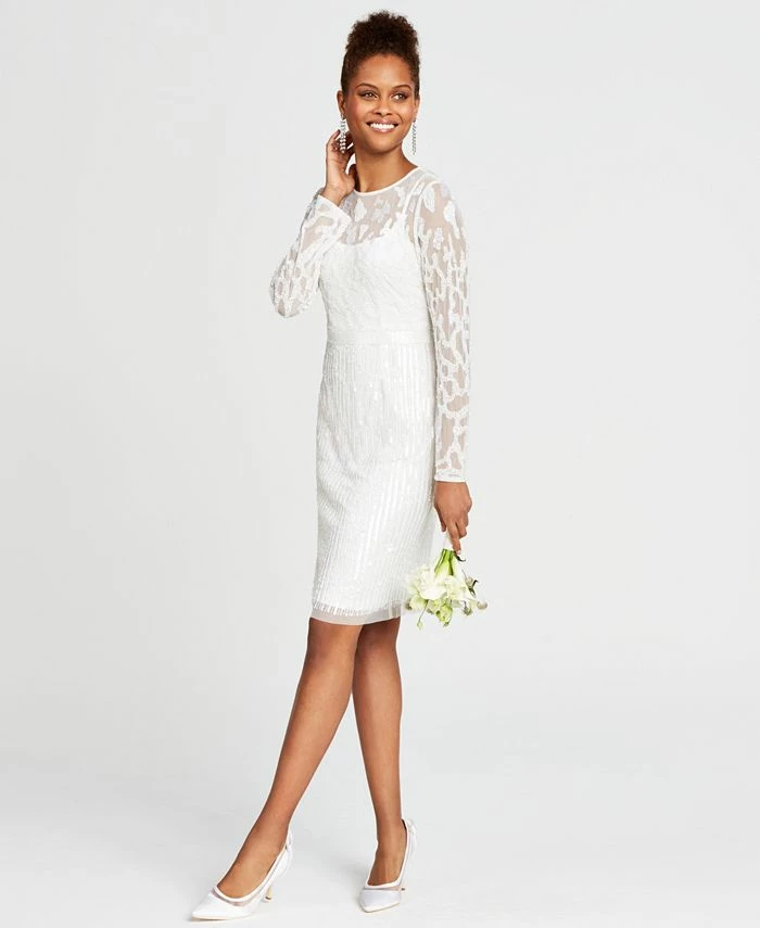 The little white dress of your dreams. You’ll be saying ‘I do’ to Adrianna Papell’s beaded, sequined sheath.