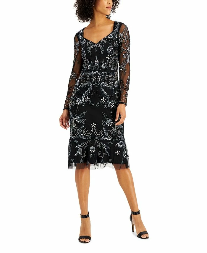 Transform your formal event look with this dress Adrianna Papell; featured with allover sequins and a flattering midi length.