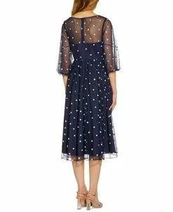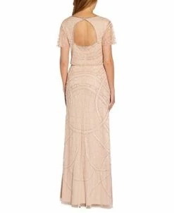 - Surplice neckline with satin lapels; back zipper closure