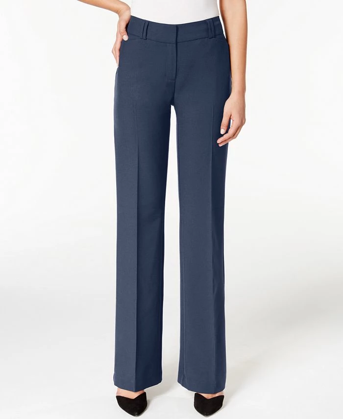 The effortlessly stylish design of Alfani’s pants makes them an essential for your career wardrobe. The curvy fit is ideal for a smaller waist and fuller hips, giving the impression they were specifically tailored for your curves. The timeless bootcut silhouette relaxes the leg, so they’re perfect to pair with any sort of shoes.