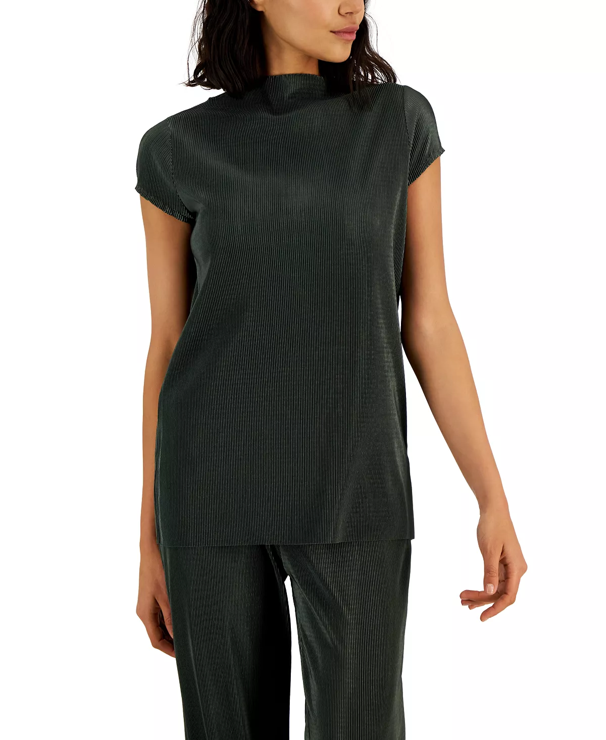 A pleated finish lends understated elegance to this short-sleeve top from Alfani.