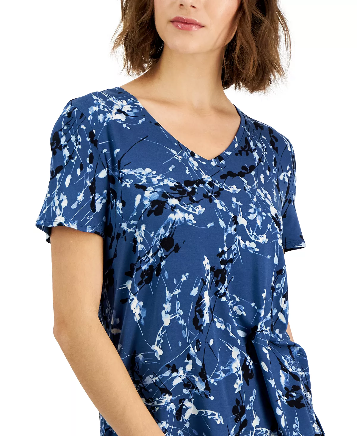 Alfani’s eye-catching print refreshes your wardrobe with this this step-hem T-shirt.