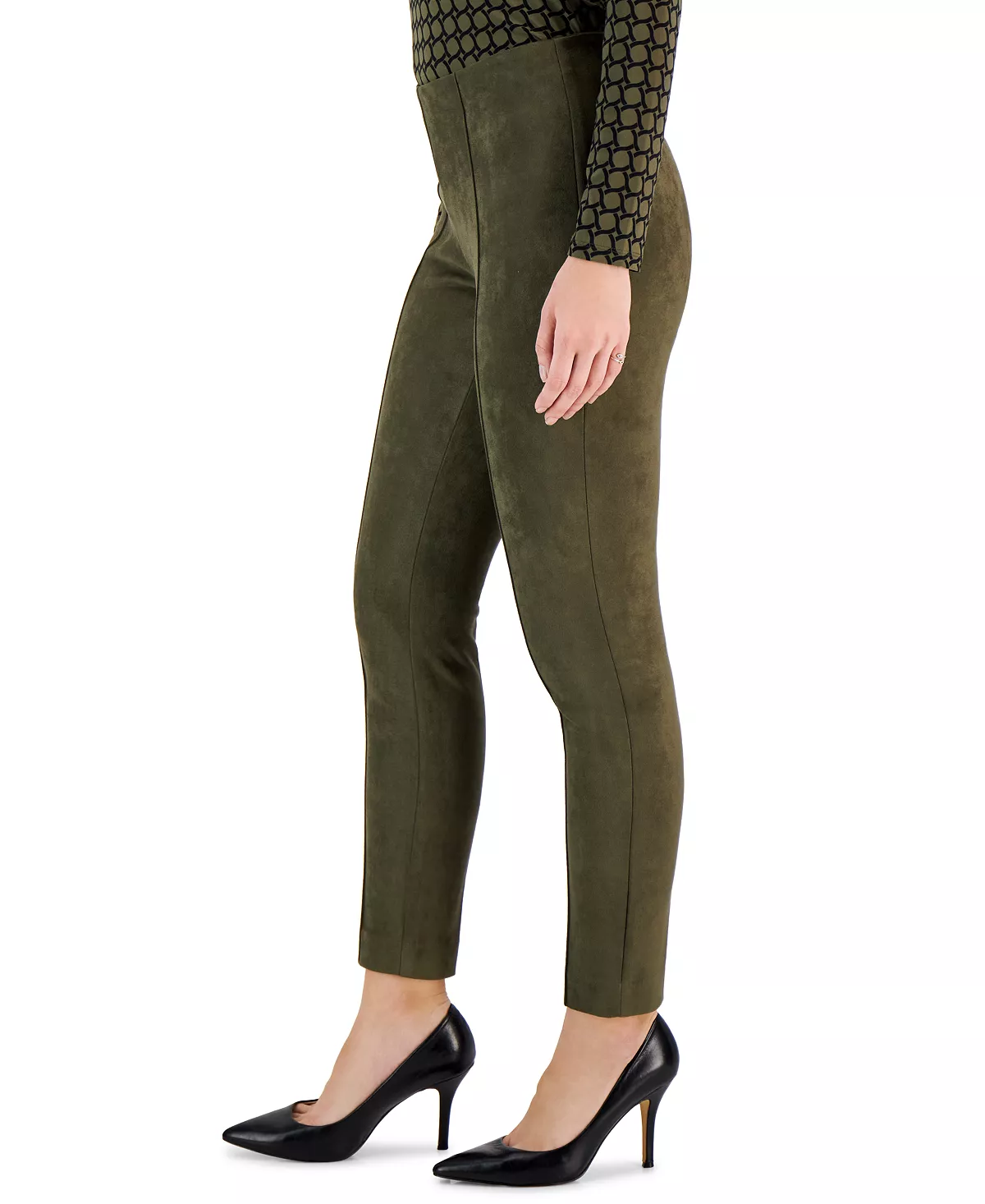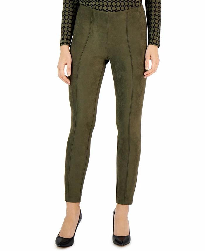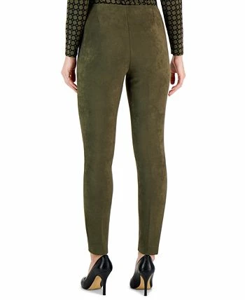 We love the polished look of these sleek faux suede slim pants from Anne Klein, finished with a front seam for tailored detail.