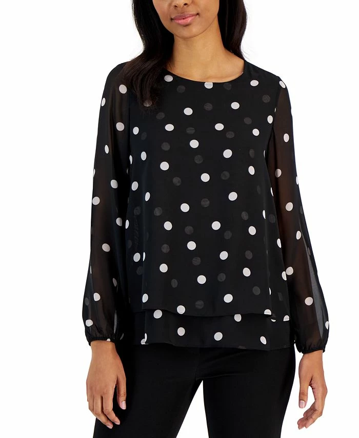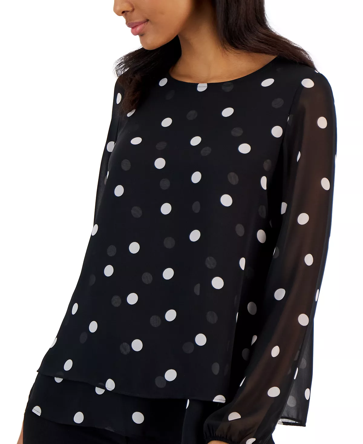 Swap your basic button-up for this office-ready blouse by Anne Klein. It’s eye-catching and sophisticated with a flawless fit and flowy chiffon sleeves.