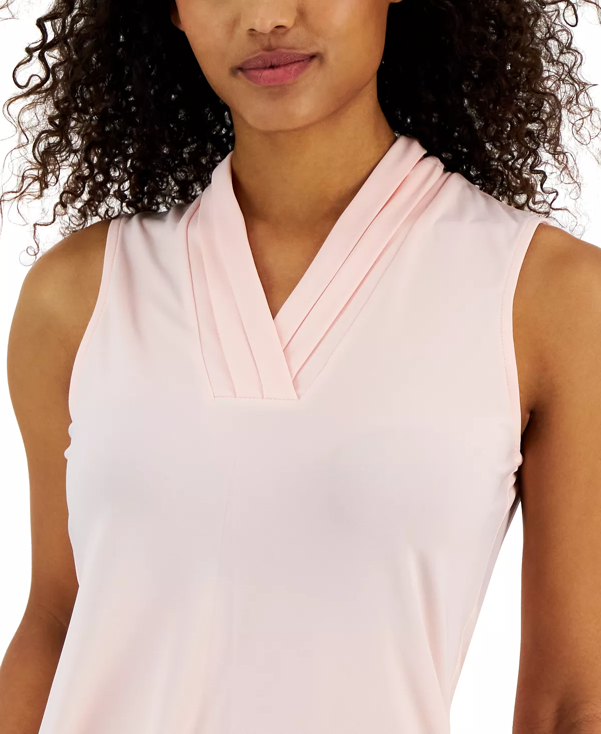 Anne Klein dresses up your basic sleeveless shell top with a chic triple-pleat neckline detail.