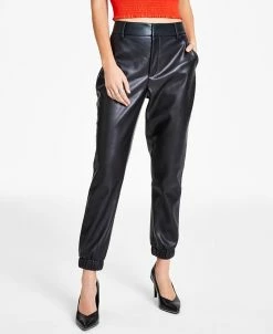 Bar III upstyles the popular jogger silhouette with a faux-leather silhouette on these fashion-forward pants.
