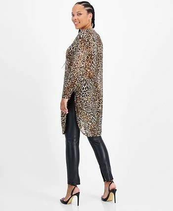 Bar III adds a flowy feel to your wardrobe with this animal-print chiffon tunic top.