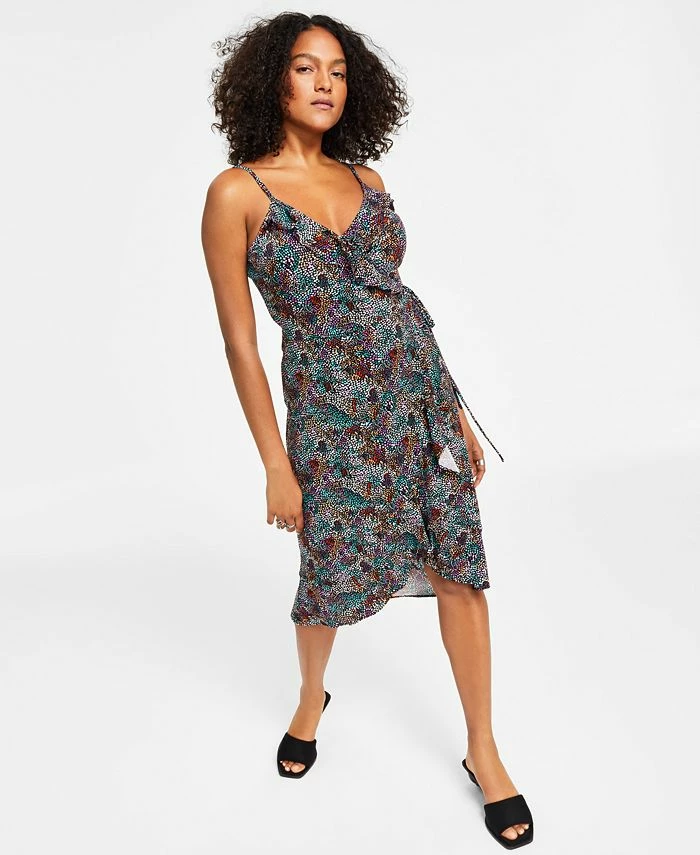Bar III flawlessly enhances this wrap midi dress with ruffle detail at the hem and a striking print.