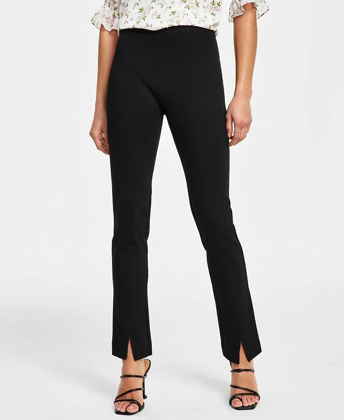 Designed with a slit at front cuffs, these Ponté-knit pull-on pants are the perfect addition to your boardroom wardrobe.