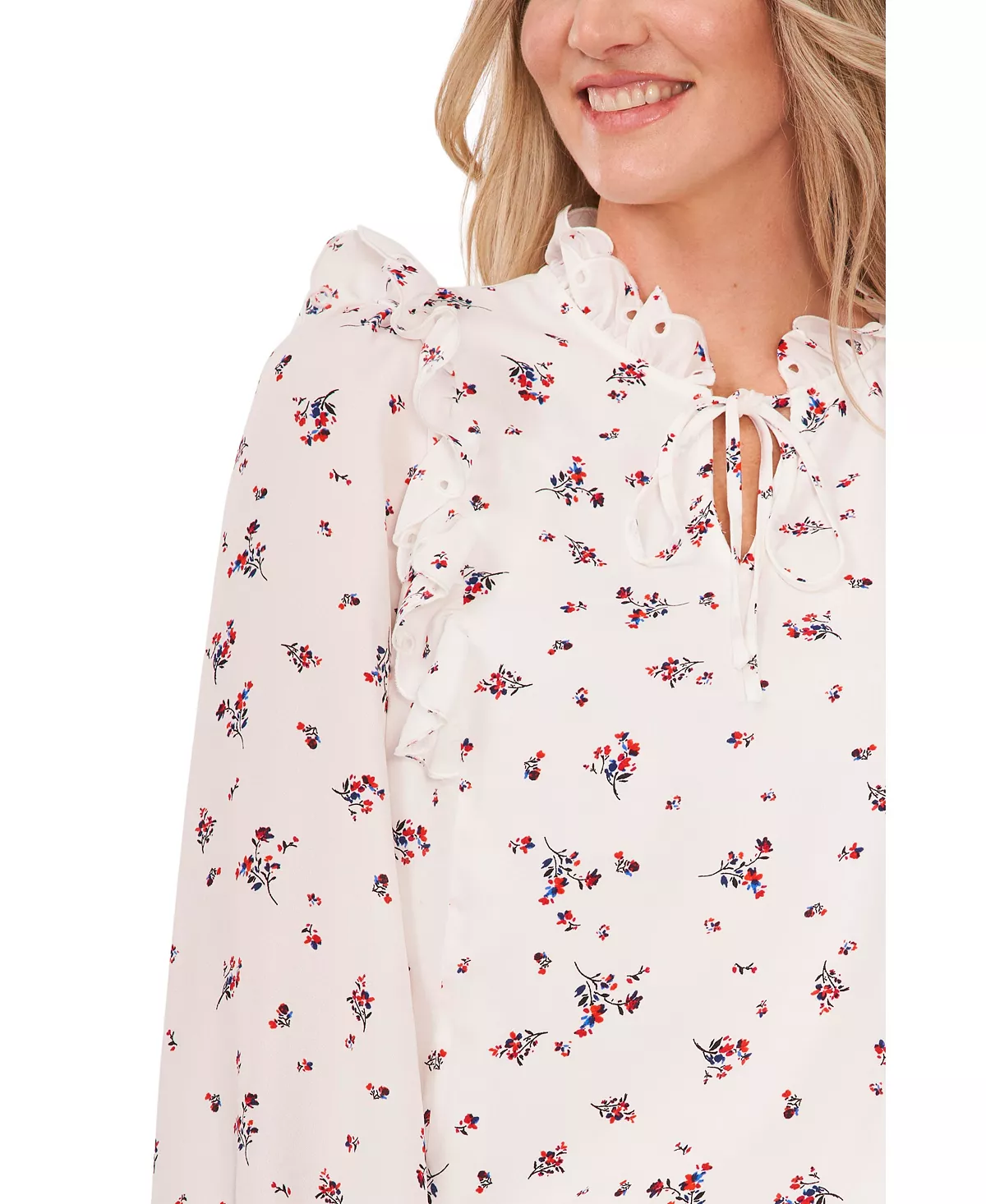 Perfectly polished with a ruffled tied neckline and ruffled cuffs. CeCe’s long sleeve top easily dresses up any outfit, making it an ideal option for so many occasions.