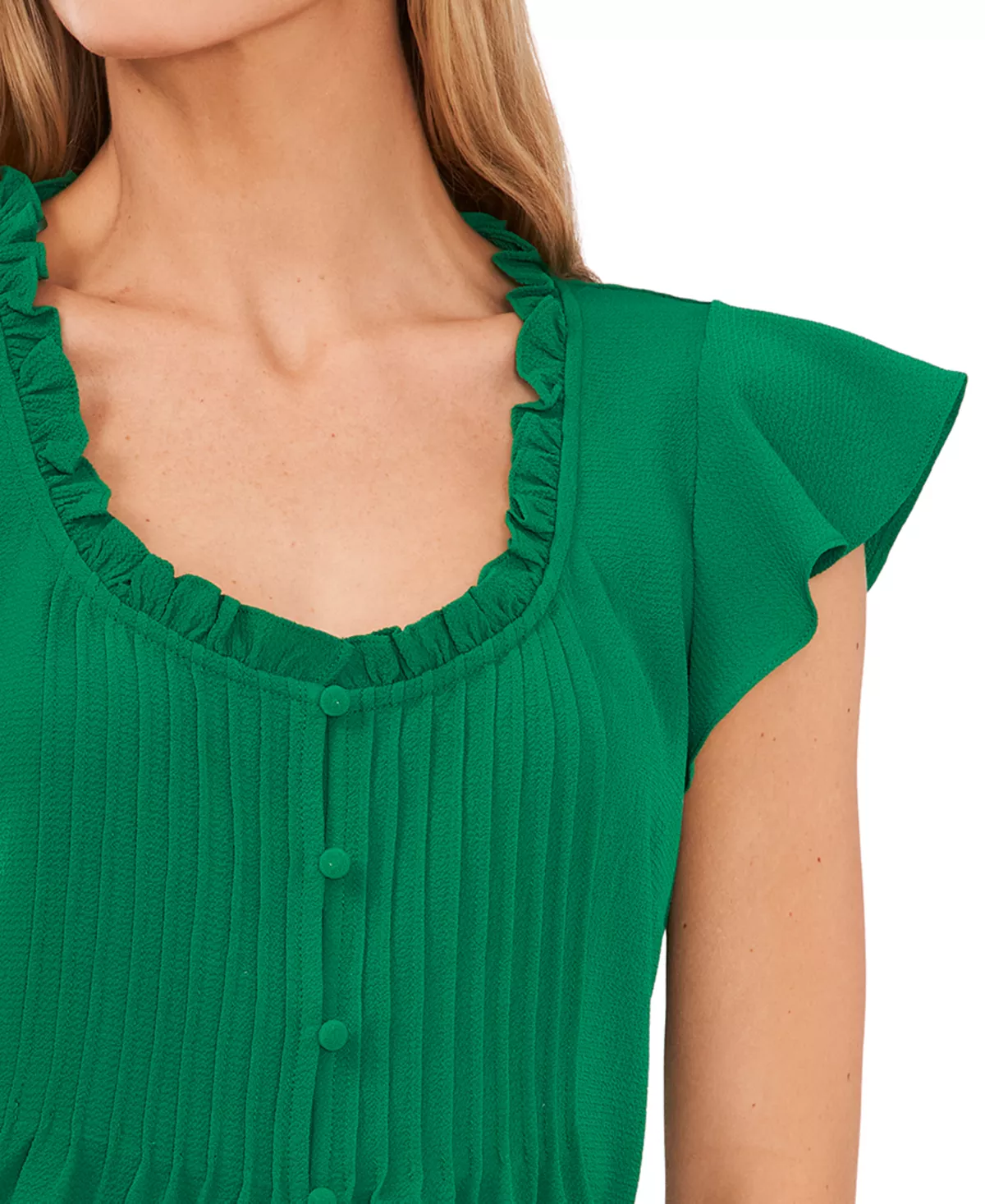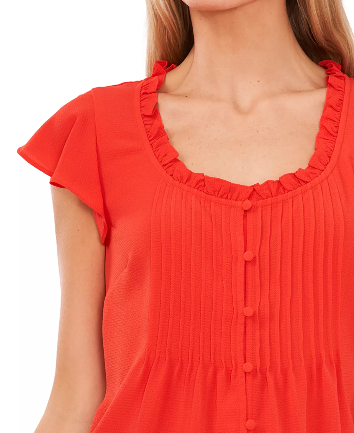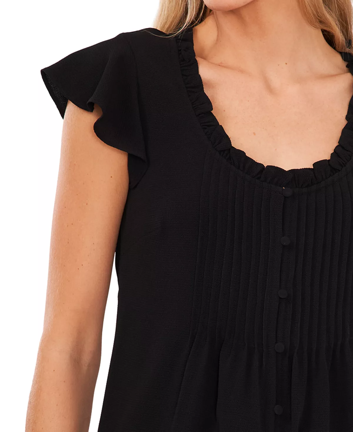 CeCe brings us a stylish blouse with pops of chic detailing, the pintuck at the front perfectly compliments the flutter sleeves for a charming finish.