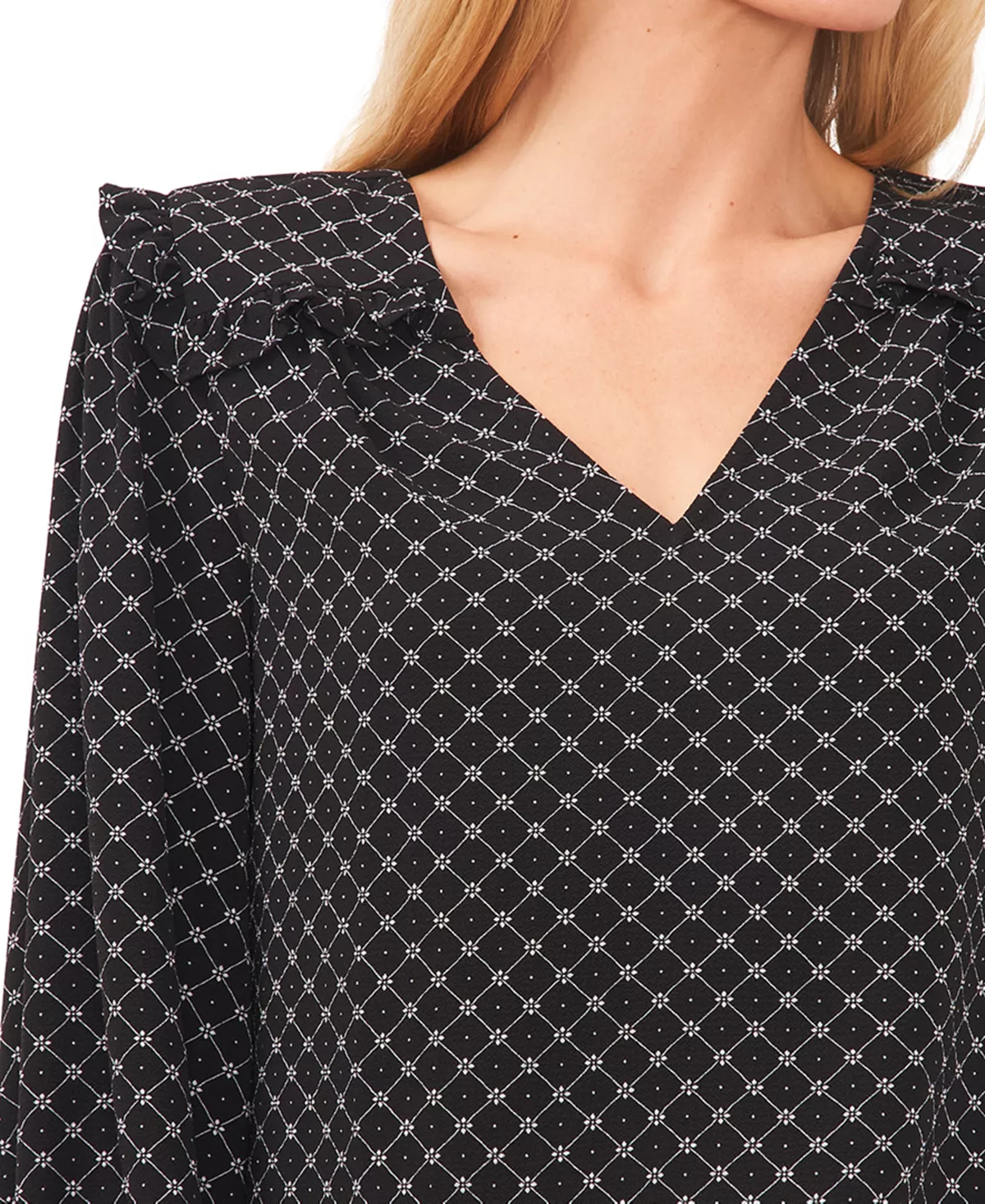 Ruffles lend a charming look to this women’s top from CeCe, pair with a variety of bottoms for endless styling options.