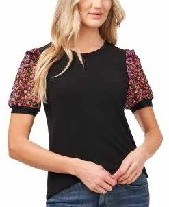 Pretty floral-print chiffon sleeves frame your look with a fresh touch on this knit top from CeCe.