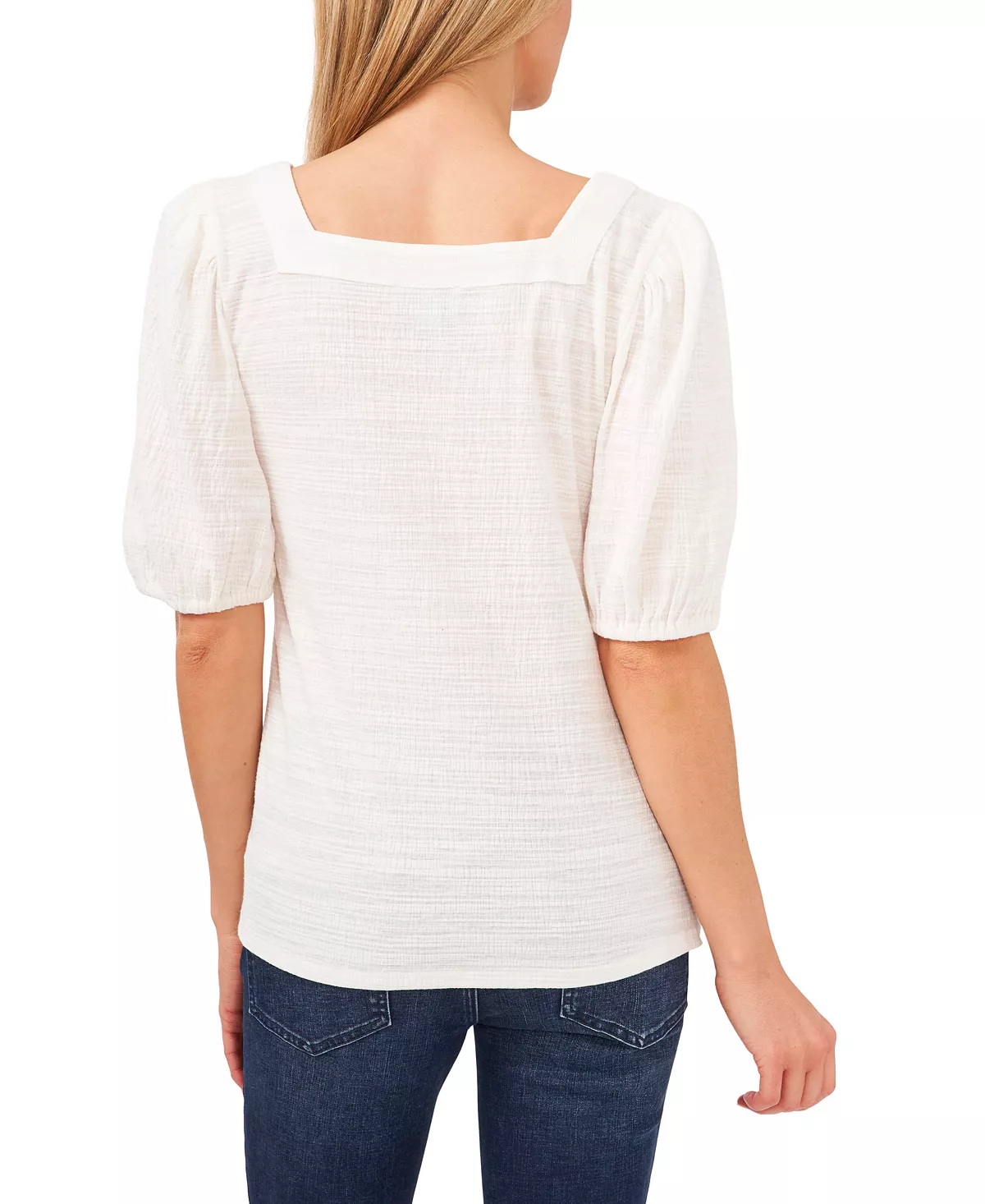 This airy puckered slub knit top from CeCe features puff sleeves.