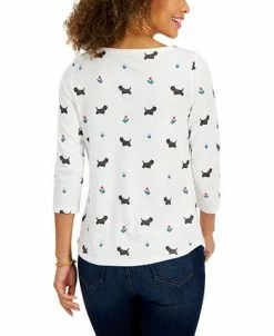Pretty in a tonal floral print, this knit polo from Charter Club is polished with pleats that give it stylish appeal.