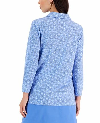 A polo-inspired look with polish. This Charter Club top is in piqué knit with a fresh print and stylish pleats at the neckline.