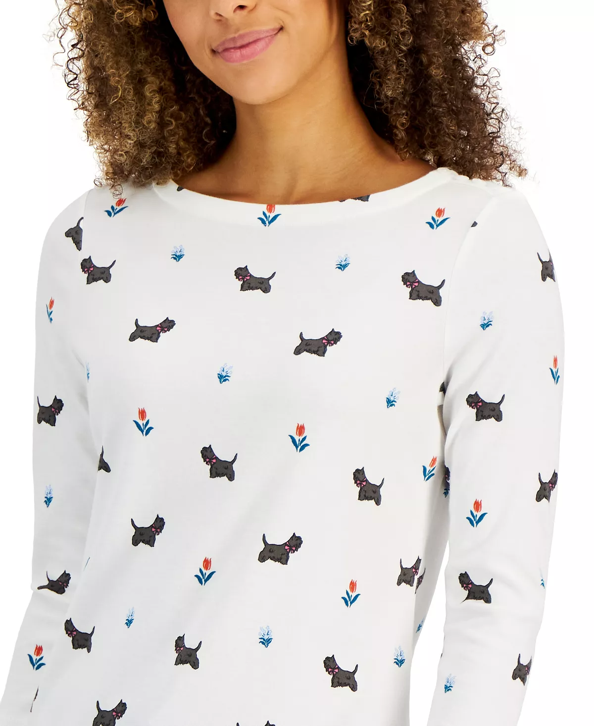 Show off your love for dogs with this charming boatneck top from Charter Club, finished with a whimsical dogs & flowers print.