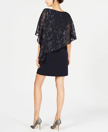 A glittering capelet lends elegance and style to a very flattering special occasion dress from Connected.