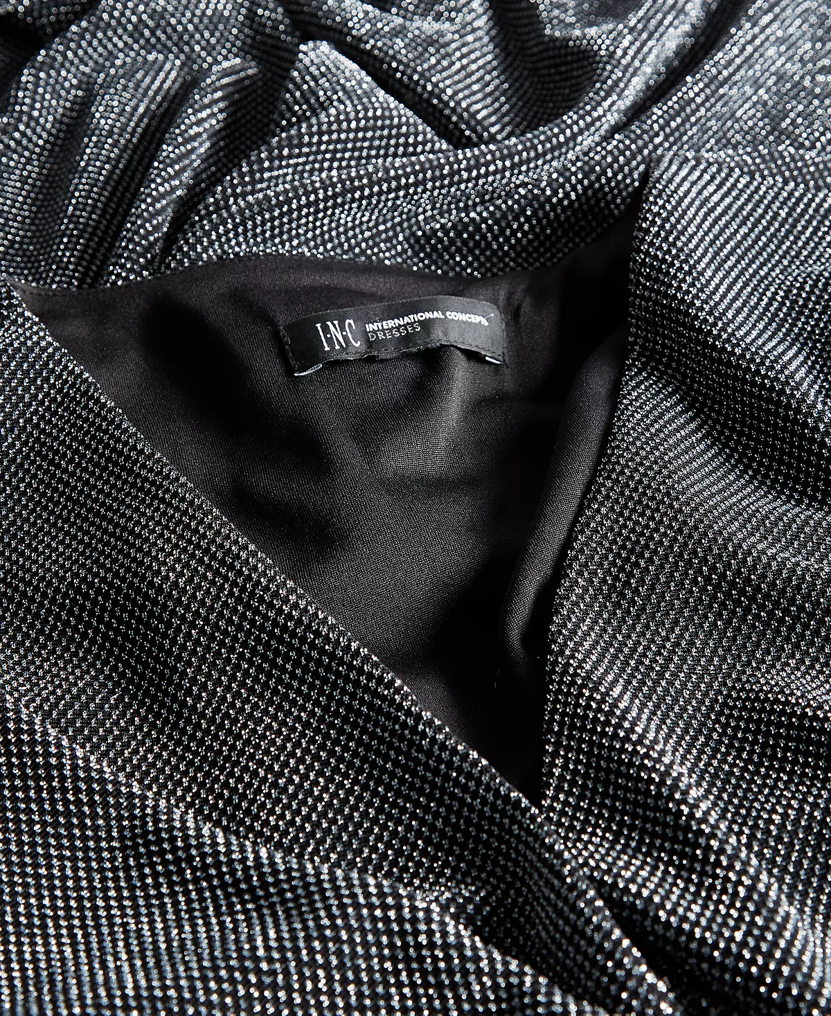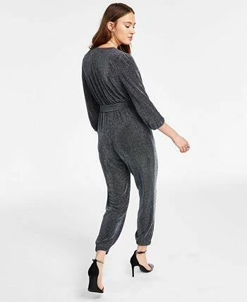A stylish sheen, ideal for any party scene, adds a glam glow to this surplice V-neck jogger-leg jumpsuit from INC International Concepts.
