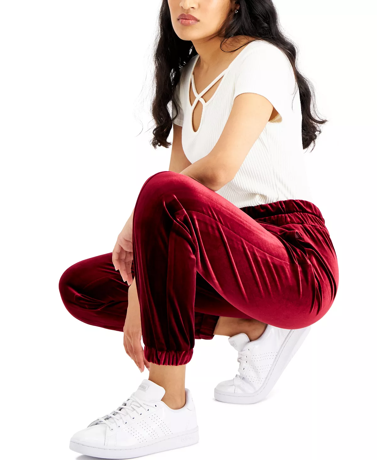 Soft, plush velvet brings a luxe finish to a sporty silhouette with these pull-on jogger pants from INC International Concepts®.
