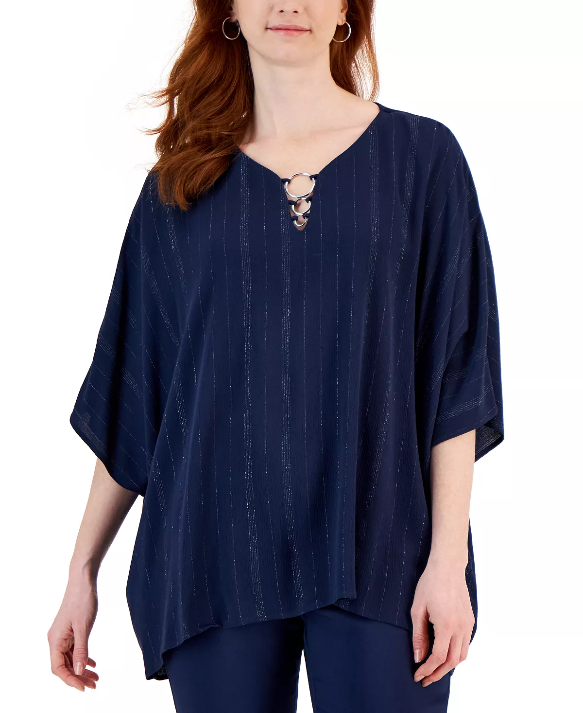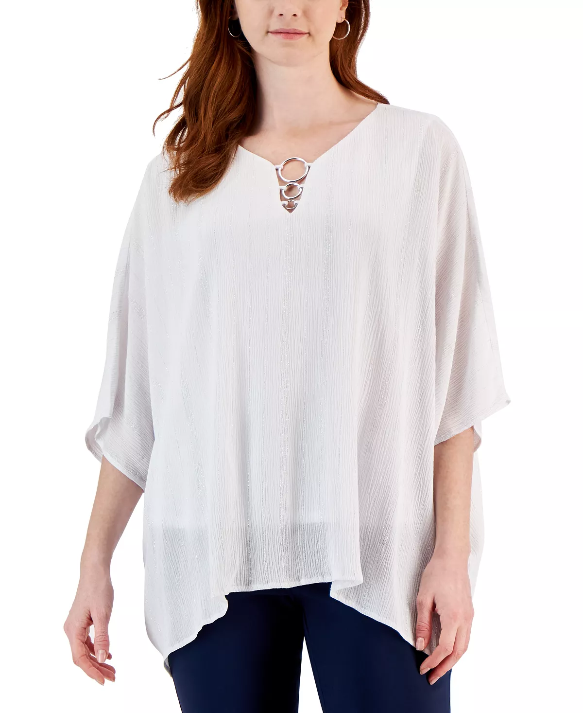 Embrace the shimmer of Lurex in this poncho from JM Collection designed with O-ring detail at the neckline.