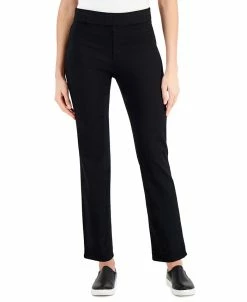Karen Scott brings the style of jeans but the ease and comfort of pull-on pants with these ultra-chic black denim pants.