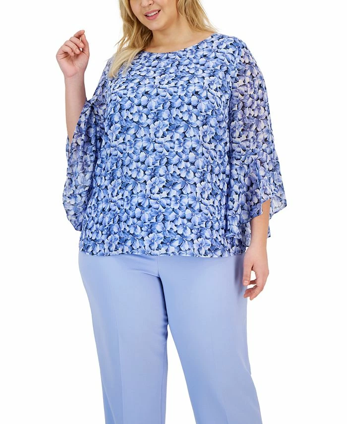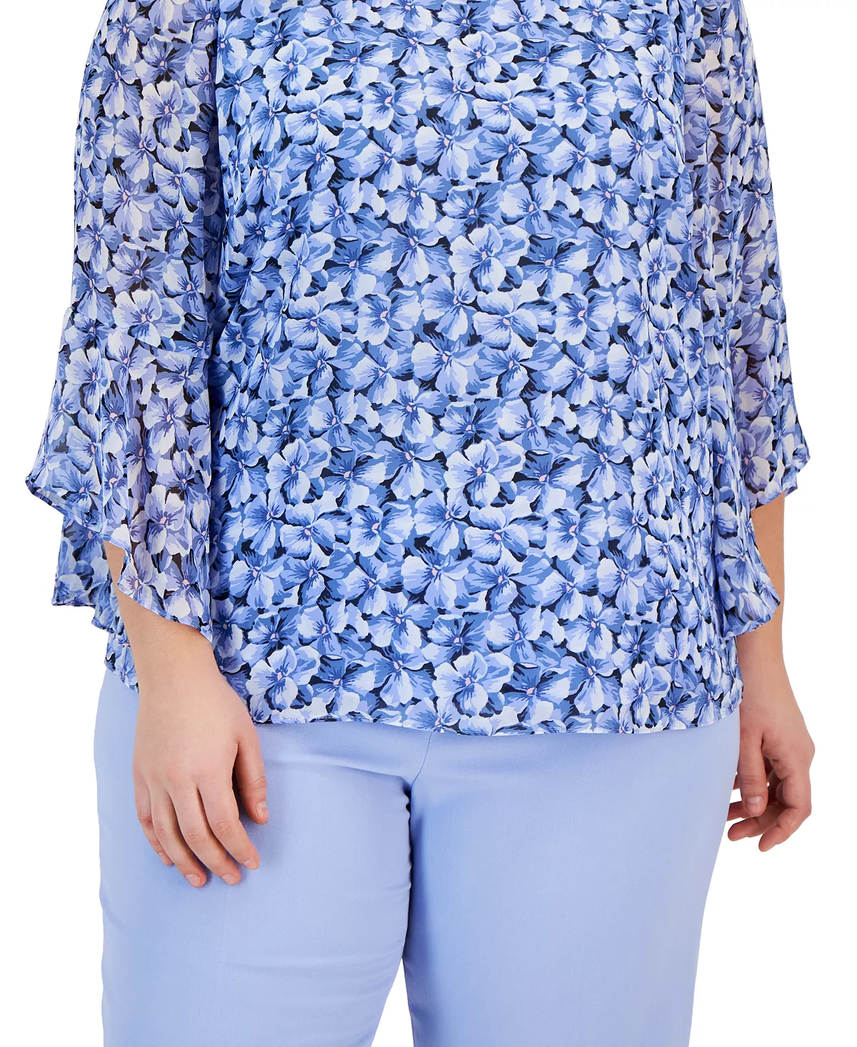 You’ll be presentation-ready in this plus size career top from Kasper designed with flowy 3/4-sleeves and a graceful boat neckline.