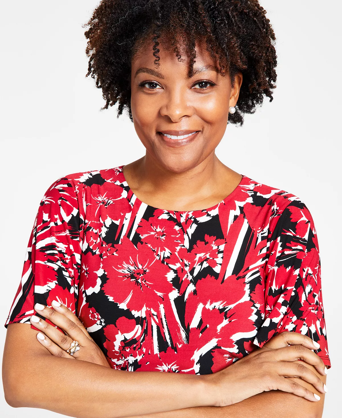 Electric energy flows through the vivid abstract floral knit of this Kasper A-line dress. Its vivacious vibe will take you from desk to dinner with ease.