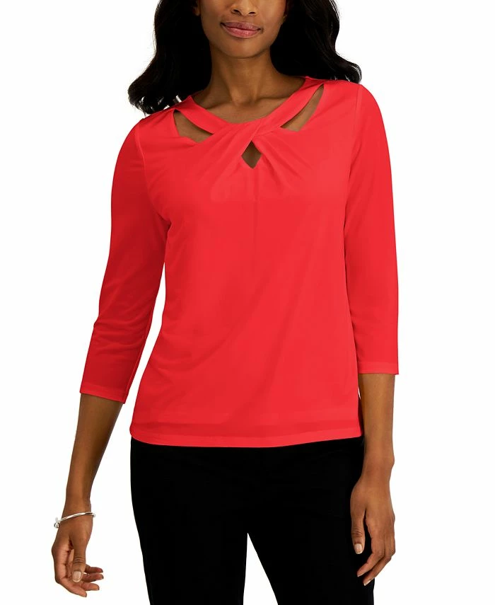 Keep your career look current in this stylish 3/4-sleeve top from Kasper designed with a twisted neckline.