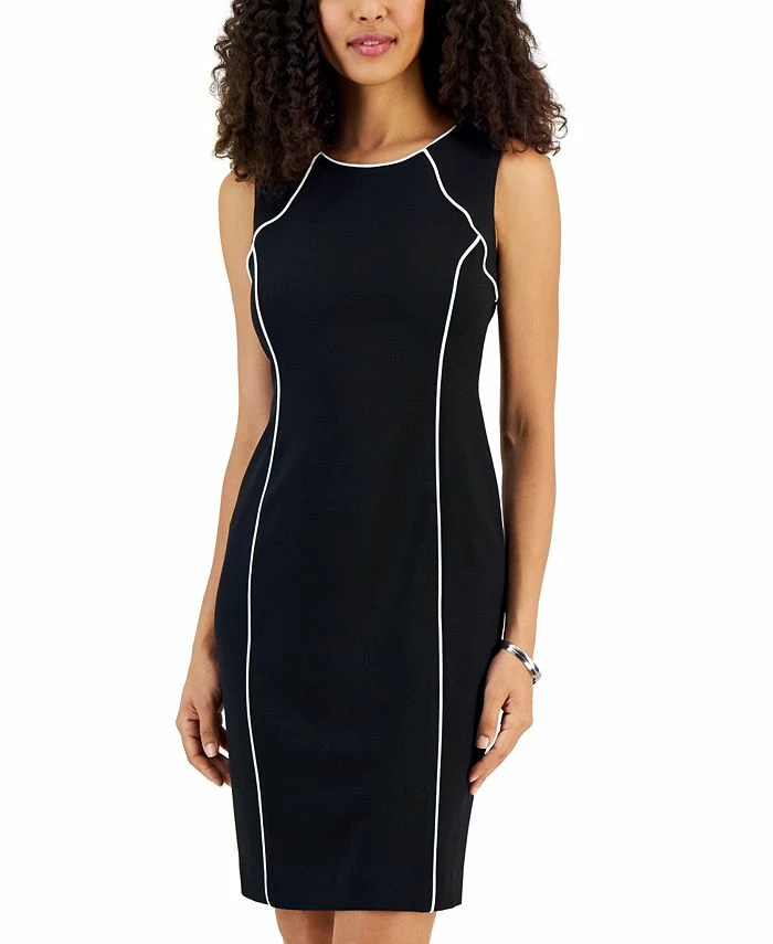 Keep sleek and chic with this piped sheath dress from Kasper.