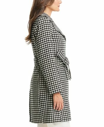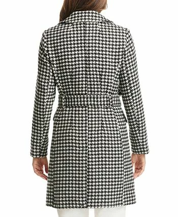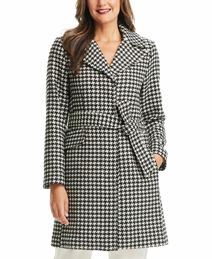 A timeless houndstooth print covers every inch of this belted wrap coat from Kate Spade New York.