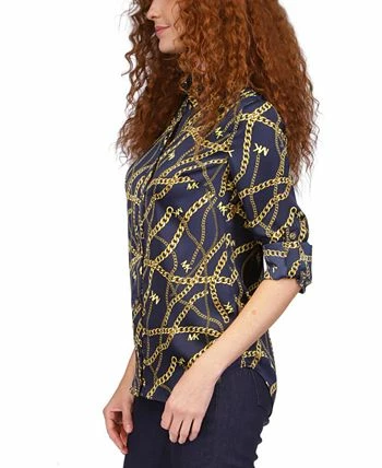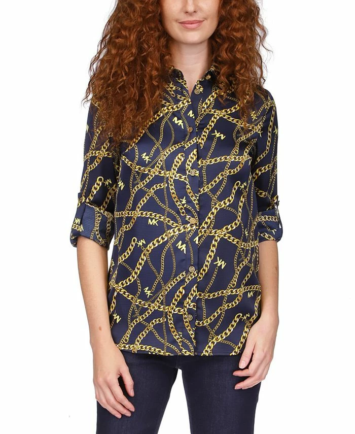 Polish your buttoned-up look with this MICHAEL Michael Kors shirt, in soft hammered satin with a signature chain print.