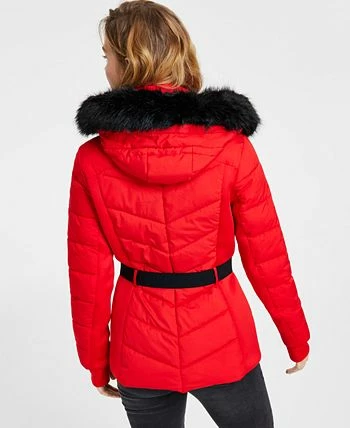 Luxe faux-fur trim and an elasticized belt come together on this chic puffer coat from MICHAEL Michael Kors.