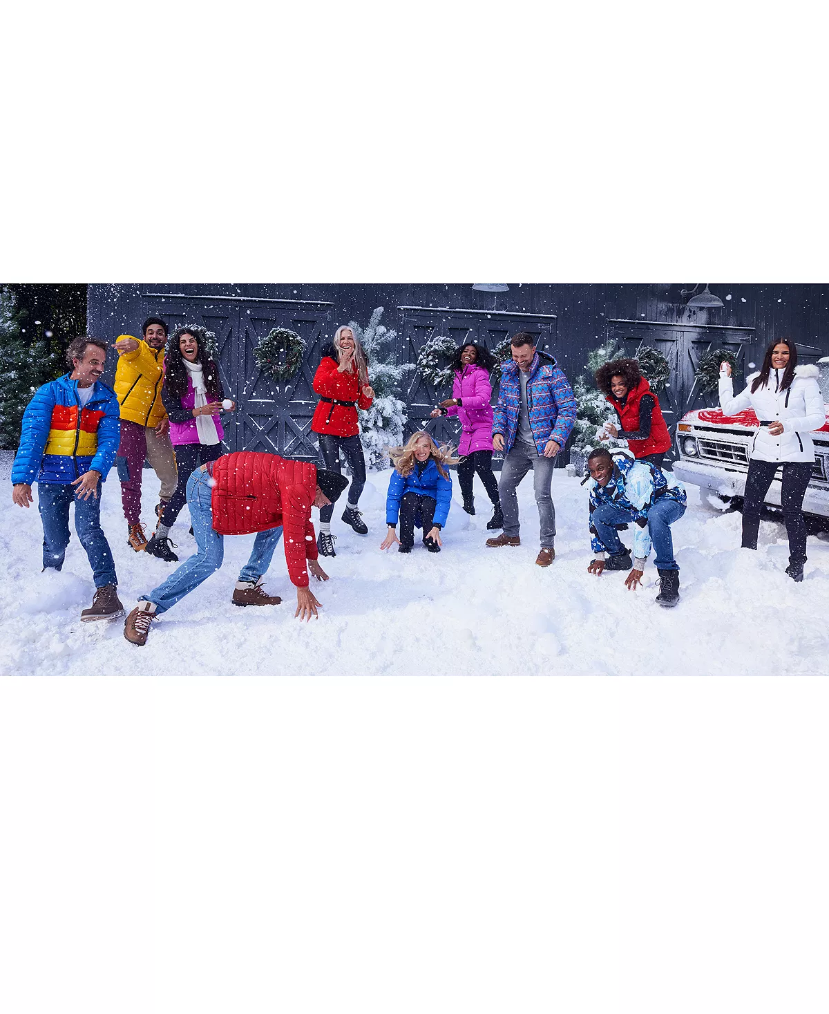 - Shell, lining & fill: polyester; fill power: 400; shell 2 & knit trim: polyester/spandex; faux fur: modacrylic/polyester