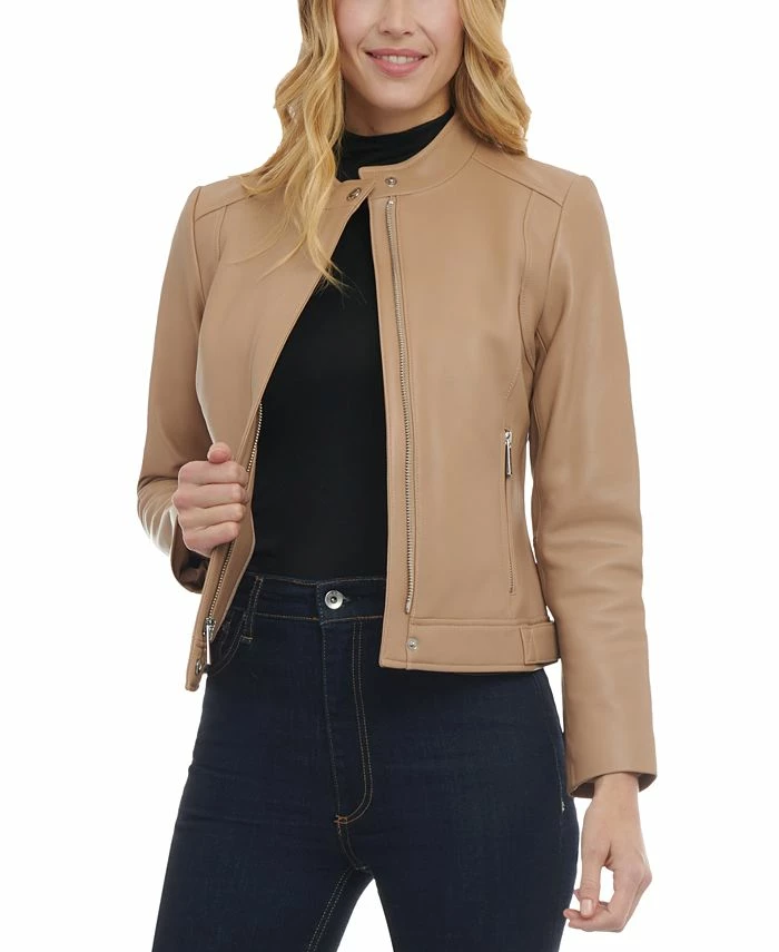 Start something stylish in this petite moto jacket from MICHAEL Michael Kors designed entirely in leather and finished with a sleek stand collar.