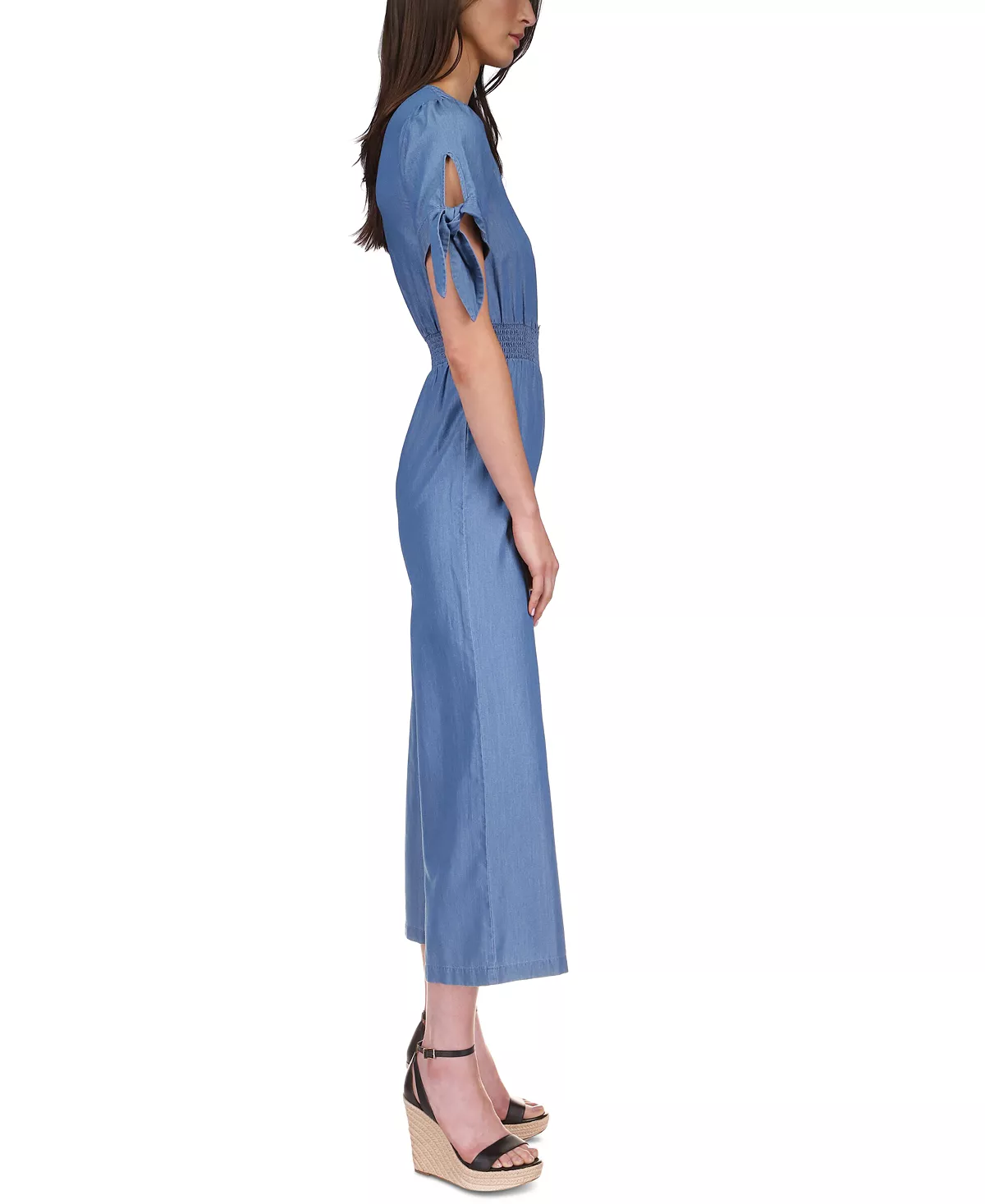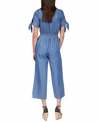 An easy look in light-wash twill, this MICHAEL Michael Kors jumpsuit is updated with fun ties at the sleeves.