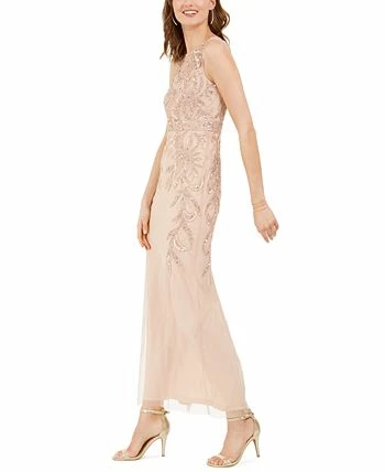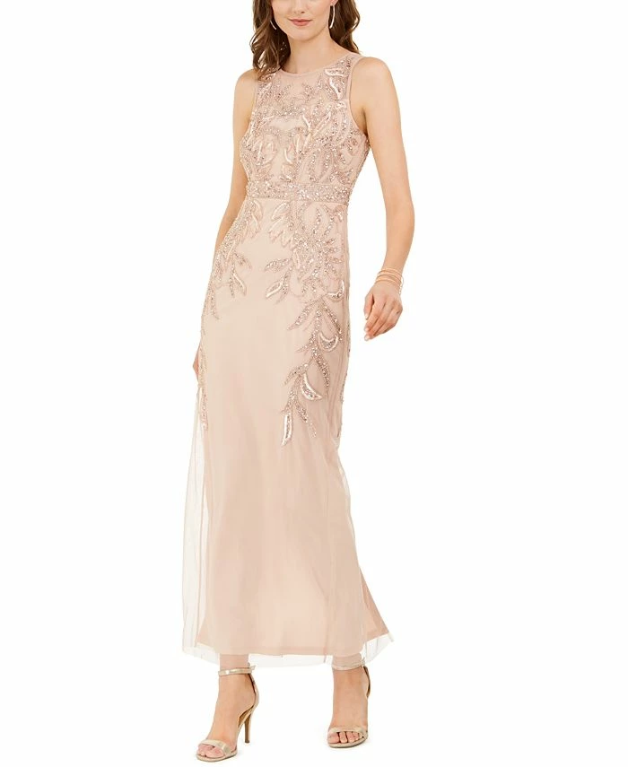 Brilliant bead embellishments shimmer with every step in this sleeveless gown from Adrianna Papell.