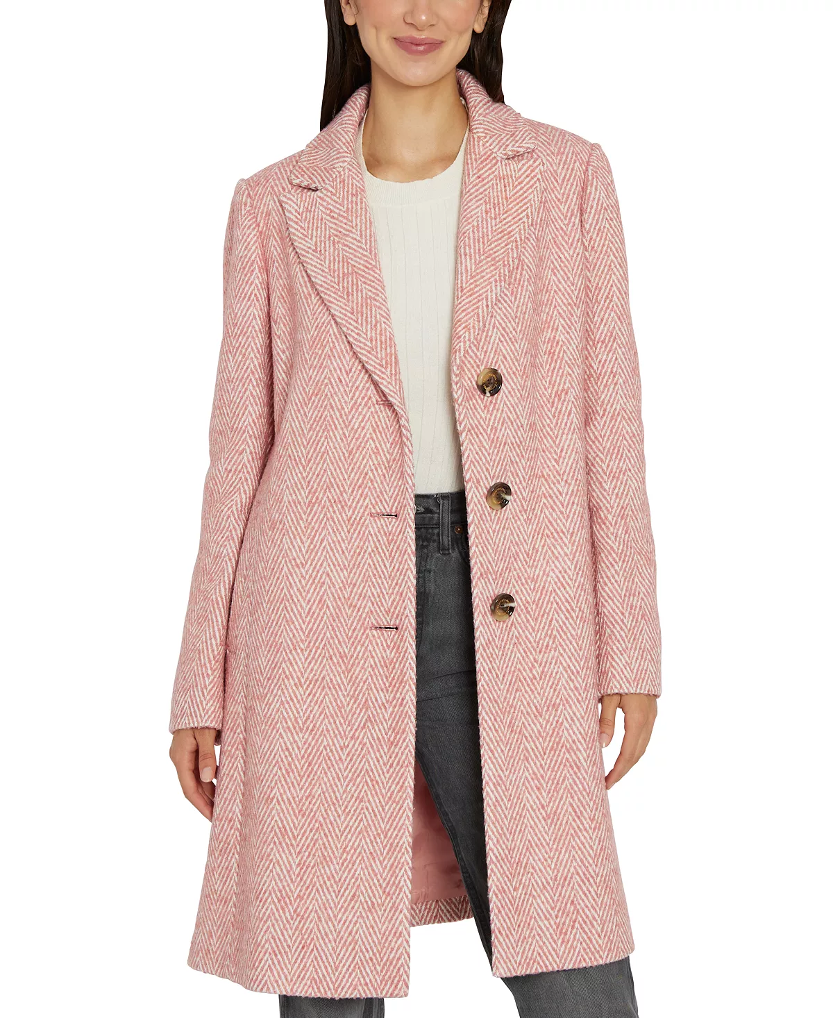 A classic reefer coat from Sam Edelman, this sleek pick features a single-breasted front and a notched collar for polish.