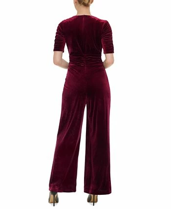 Go from desk to dinner in glam style with this gorgeous Vince Camuto velvet jumpsuit featuring a twist-front detail and a flowing flare-leg silhouette.