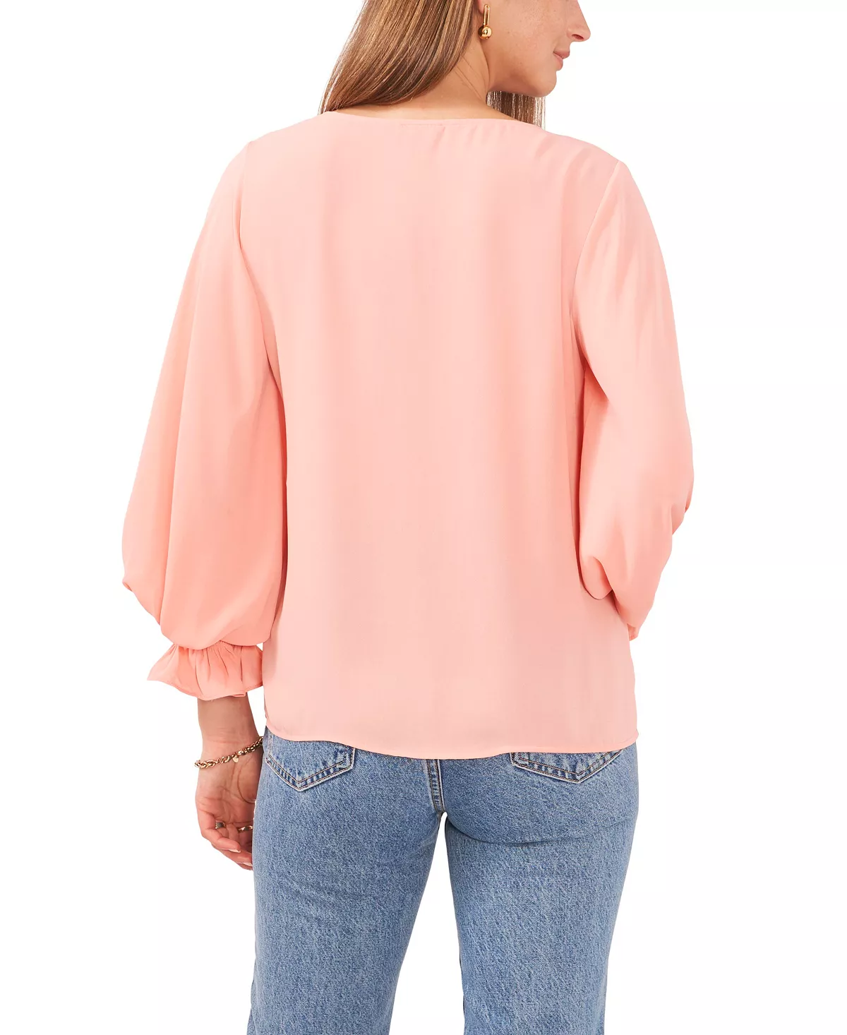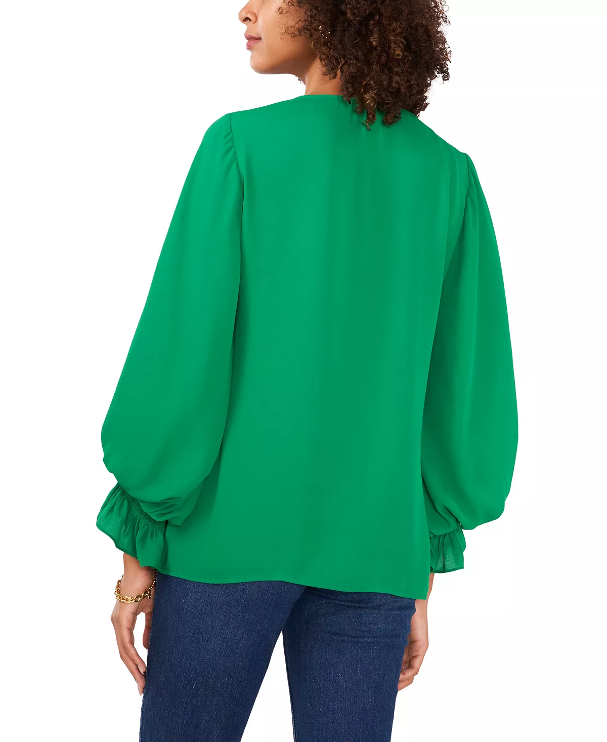Add a touch of romance to your look with this Vince Camuto top, in a versatile solid color with softly ruffed bubble sleeves.