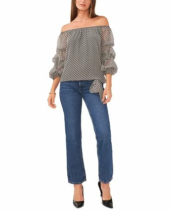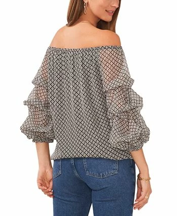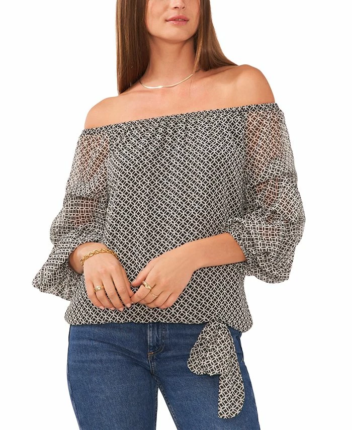 The perfect balance of charming and chic, this Vince Camuto top features an off-the-shoulder silhouette in a sleek contemporary print.